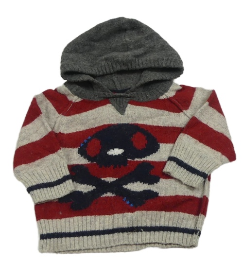 Červeno-šedý pruhovaný vlněný svetr s lebkou a kapucí Next