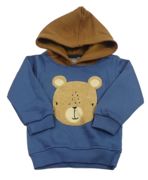 Modro-hnědá mikina s medvídkem a kapucí