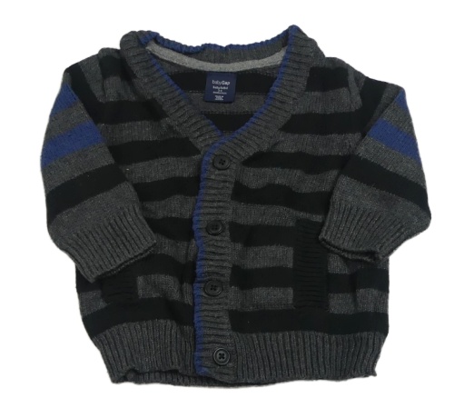 Tmavošedo-černý pruhovaný propínací svetr GAP