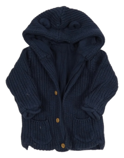 Tmavomodrý propínací podšitý svetr s kapucí George