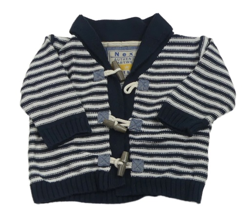 Tmavomodro-bílý pruhovaný propínací svetr Next