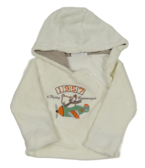 Bílá chlupatá podšitá mikina s letadlem a kapucí NKD