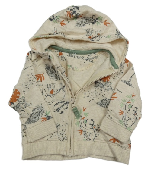 Světlebéžová propínací mikina s listy a kapucí Nutmeg