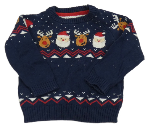 Tmavomodrý vzorovaný svetr se Sandy a soby C&A