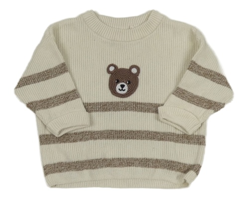 Smetanovo-hnědý pruhovaný svetr s medvědem Next