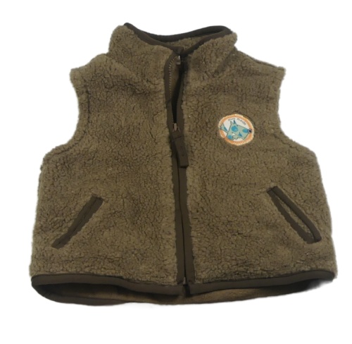 Hnědá huňatá podšitá propínací vesta s nášivkou Mini Mode
