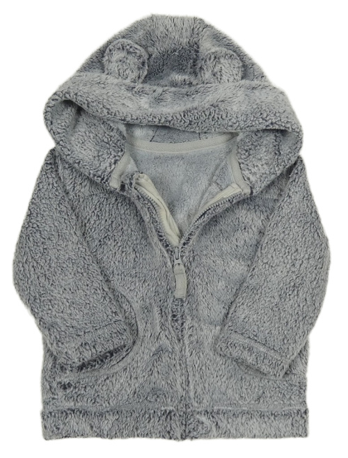 Šedá chlupatá propínací mikina s kapucí s oušky George