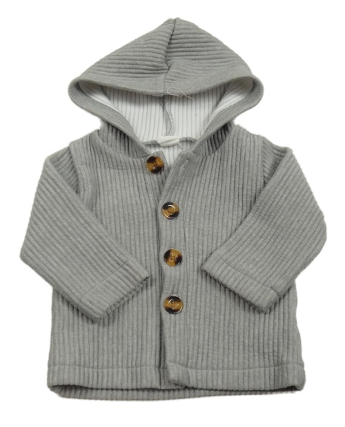 Šedá žebrovaná propínací mikina s kapucí Shein