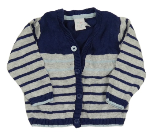 Tmavomodro-šedý pruhovaný propínací svetr Miniclub