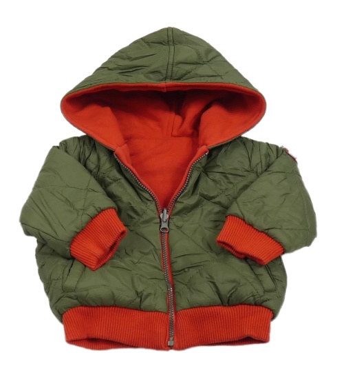 Khaki šusťáková prošívaná zateplená oboustranná bunda s kapucí