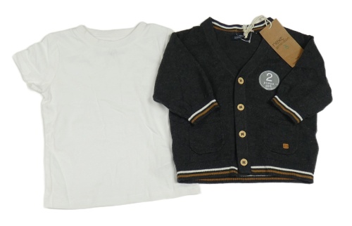 Nové - 2set - Antracitový propínací svetr + bílé tričko Next