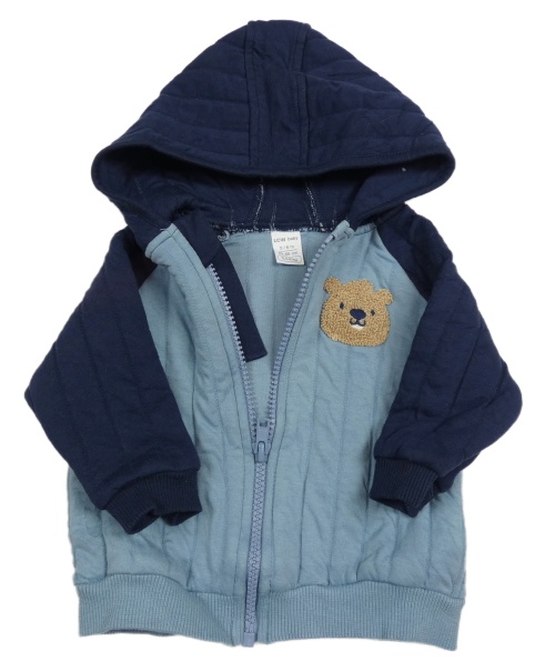 Modro-tmavomodrá prošívaná propínací vyteplená mikina s medvídkem a kapucí LC WaIKIKI