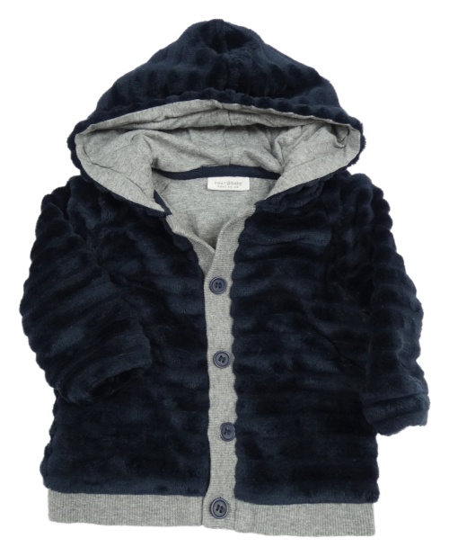 Tmavomodrá kožešinová podšitá propínací mikina s kapucí Next