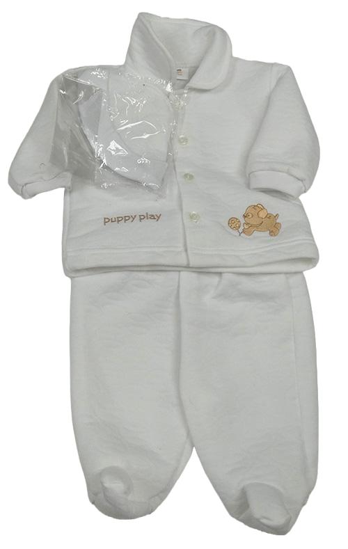 Nové - 2set - Bílá prošívaný propínací kabátek se psem + polodupky + čepipce