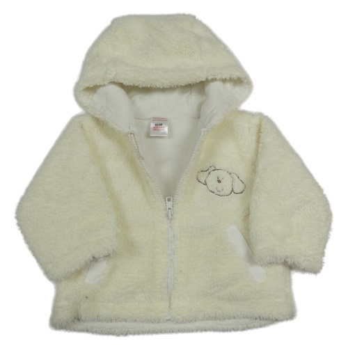 Smetanová chlupatá zateplená propínací mikina s pejskem a kapucí