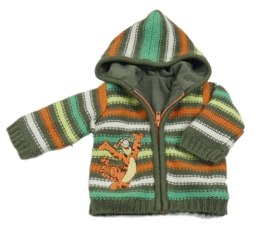 Khaki-barevný pruhovaný pletený propínací podšitý svetr s Tygrem a kapucí George