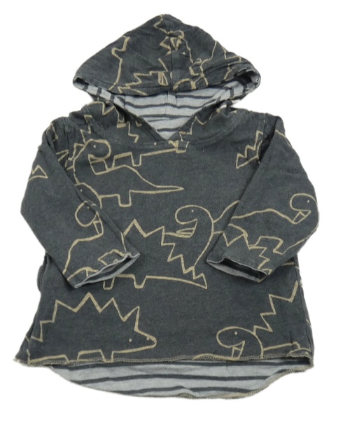 Tmavošedá melírovaná podšitá oboustranná mikina s dinosaury a kapucí Next
