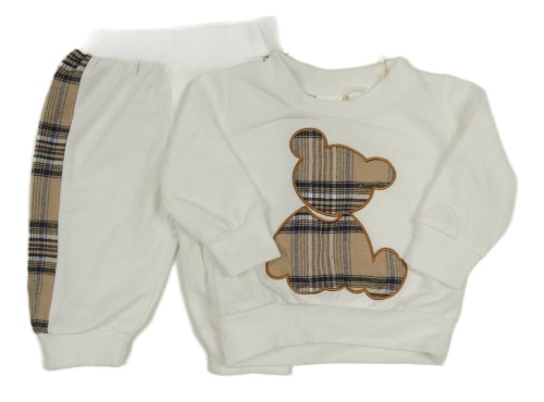 2set - Bílá mikina s kostkovaným medvědem + tepláky