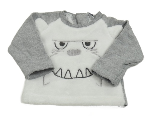 Bílo-šedá mikina s plyšovým prvkem a příšerkou
