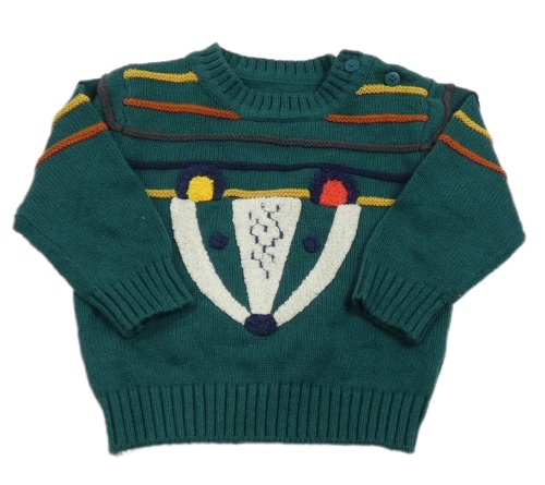 Tmavozelený pruhovaný svetr s jezevcem Nutmeg