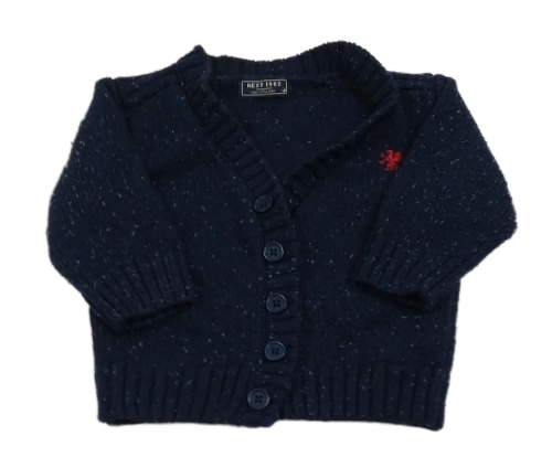 Tmavomodrý melírovaný propínací svetr s výšivkou Next