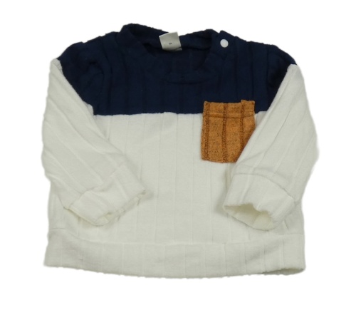 Bílo-tmavomodrá lehká žebrovaná úpletová mikina s kapsou Shein