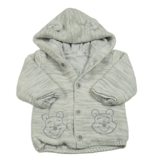 Světlešedo-bílý melírovaný podšitý propínací svetr s Pú a kapucí George