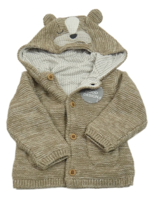 Nové - Hnědý melírovaný podšitý propínací svetr s kapucí- medvěd M&S
