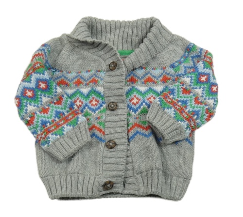 Šedo-barevný zateplený propínací svetr se vzorem Tu