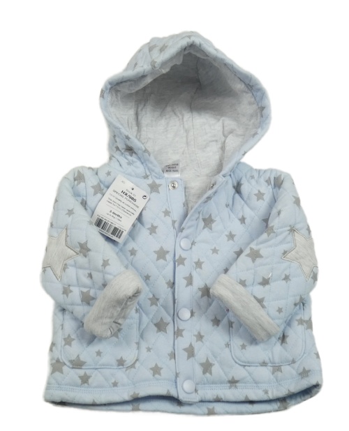 Nové - Světlemodrá prošívaná zateplená propínací mikina s hvězdami a kapucí Next