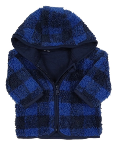 Tmavomodro-modrá kostkovaná huňatá podšitá bundomika s kapucí M&S
