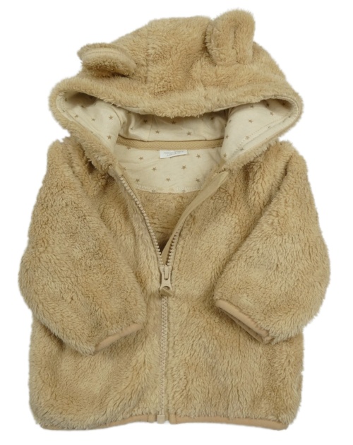 Béžová chlupatá propínací mikina s kapucí s oušky Next
