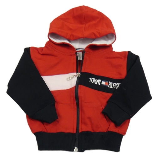 Červeno-černo-světlerůžová propínací mikina s logem Tommy Hilfiger