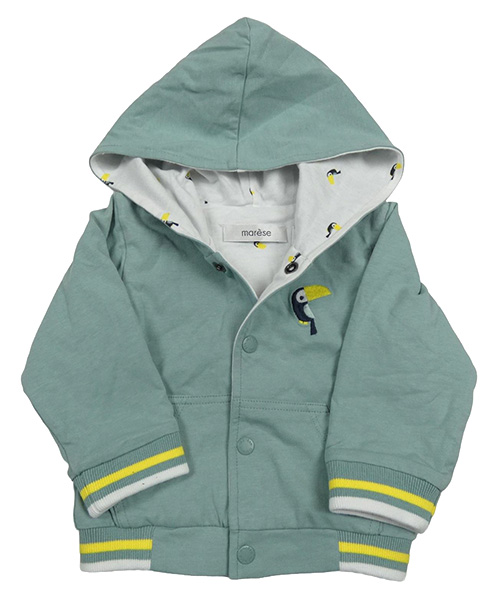 Zelenošedá podšitá propínací mikina s tukanem a kapucí