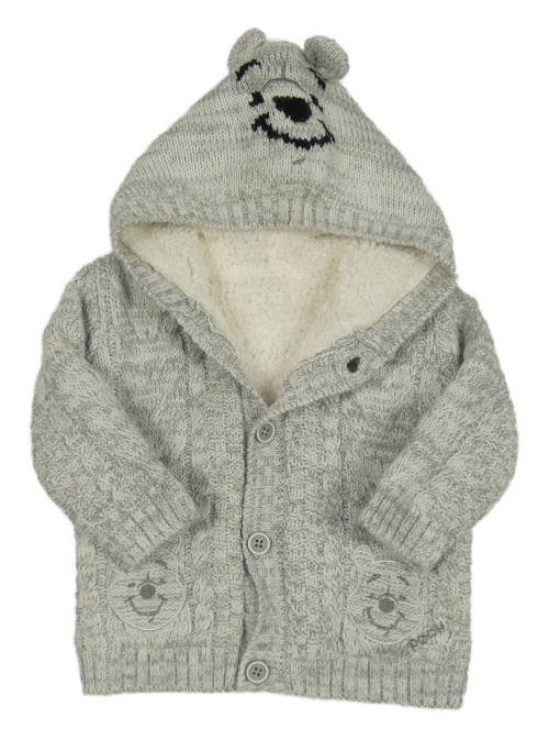 Světlešedý melírovaný propínací zateplený svetr s kapucí - Medvídek Pú George