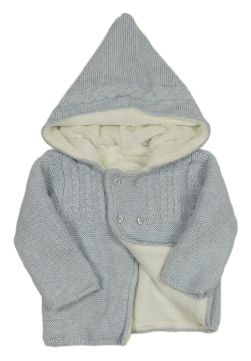 Světlemodrý zateplený propínací svetr s kapucí Tu