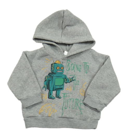 Šedá mikina s robotem a kapucí