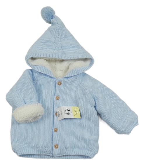 Nové - Světlemodrý propínací zateplený svetr s kapucí s bambulí Matalan
