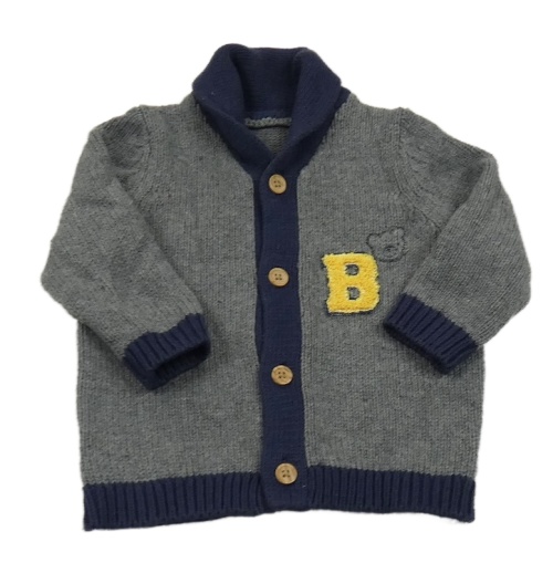 Šedo-tmavomodrý propínací svetr s písmenem George
