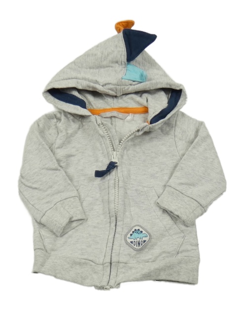 Světlešedá melírovaná propínací mikina s ostny a kapucí