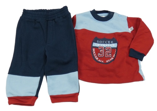 2 set - Tmavomodro-modro-červené tepláky + mikina s nápisem