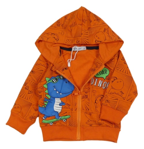 Nové - Oranžová propínací mikina s dinosaurem a kapucí