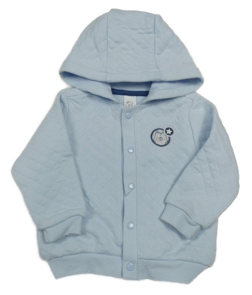 Světlemodrá prošívaná propínací vyteplená mikina s medvídkem a kapucí C&A