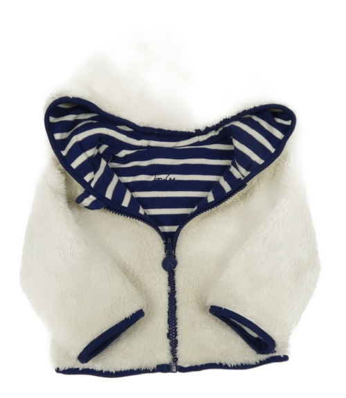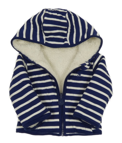 Tmavomodro-smetanová pruhovaná zateplená propínací oboustranná mikina s kapucí Joules
