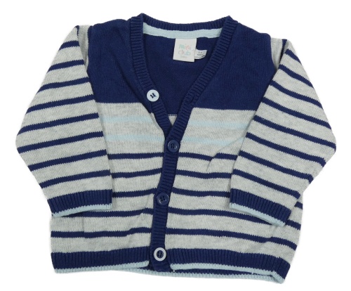 Šedo-tmavomorý pruhovaný propínací svetr Miniclub