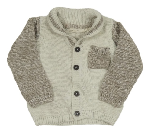 Bílo-béžový propínací svetr s kapsou Lupilu