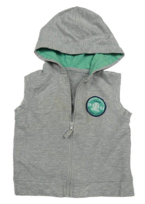 Šedá melírovaná tepláková propínací vesta s nášivkou a kapucí