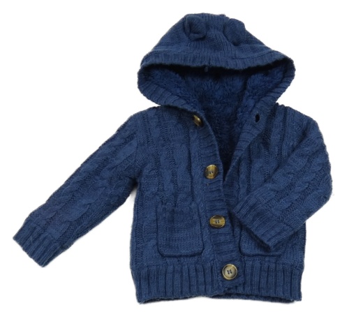 Tmavomodrý vzorovaný propínací zateplený svetr s kapucí George