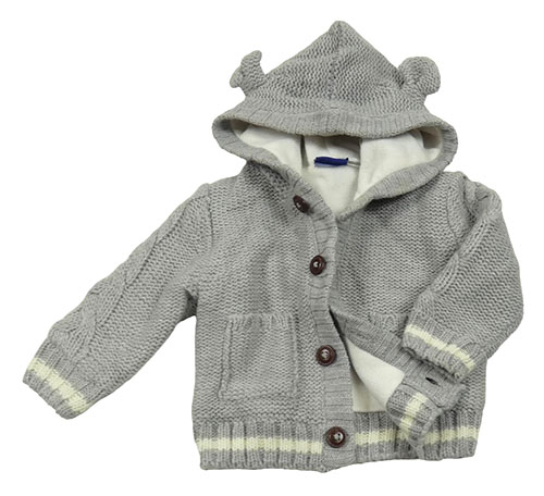 Šedý zateplený propínací svetr s kapucí s oušky Lupilu