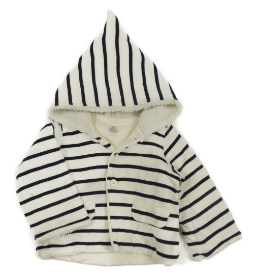 Bílo-tmavomodrá pruhovaná zateplená propínací mikina s kapucí